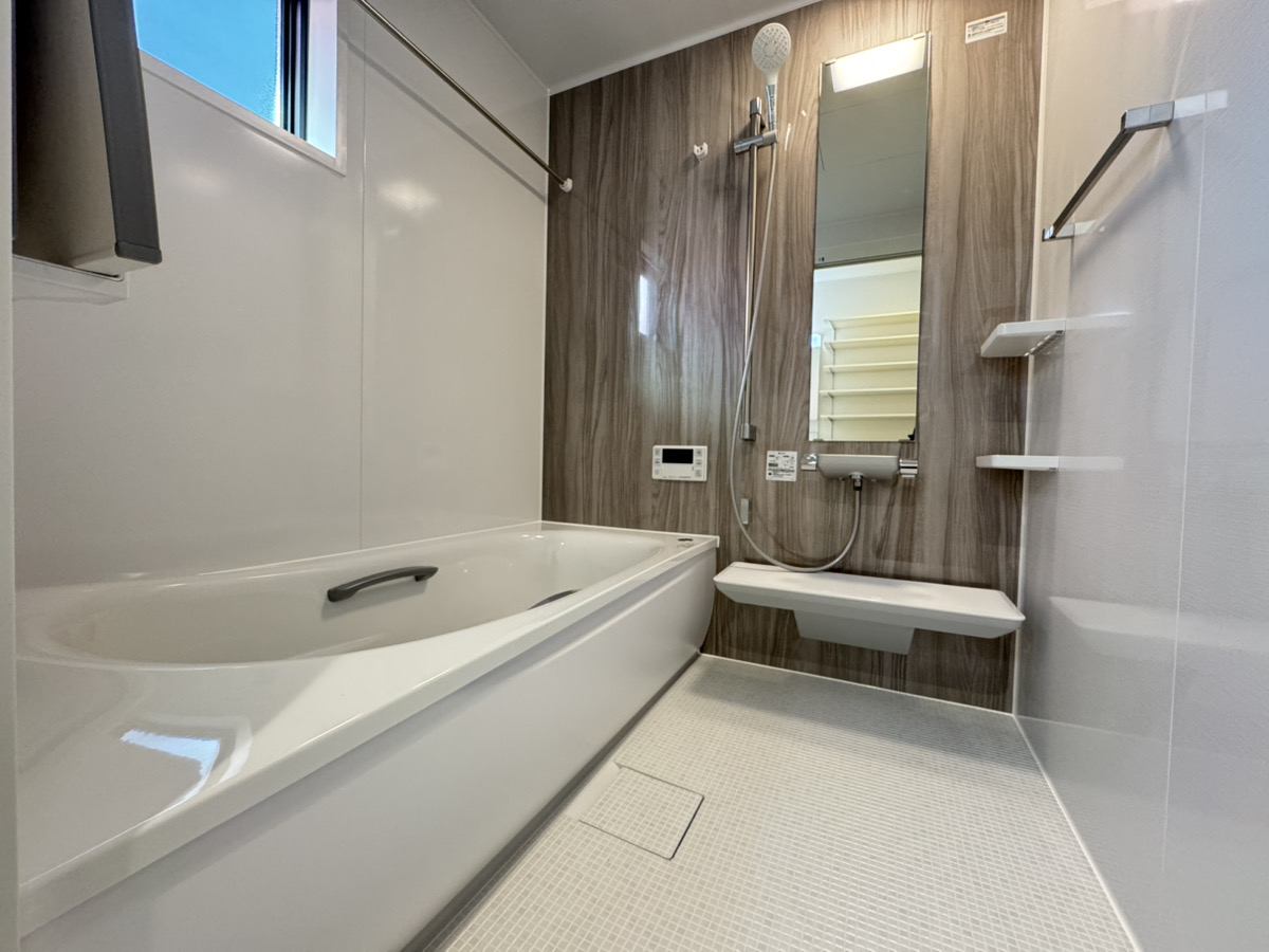 | 設備 | 温水便座・トイレ2カ所・追焚機能・システムキッチン・ウォークインクローゼット・床下収納・洗髪洗面化粧台・照明器具・都市ガス・上水道・浄化槽・複層ガラス・モニタ付きインターホン・ディンプルキー・駐車4台 | ||